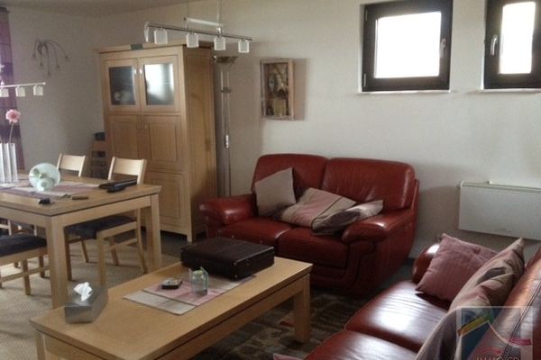 -living de +/- 30 m² entièrement meublé (salon-salle à manger ) et communiquant avec une terrasse de +/- 16 m2 plein sud par une très grande baie vitrée, ce qui permet, par beau ou mauvais temps d 'admirer le paysage magnifique qui s'offre à nous