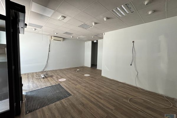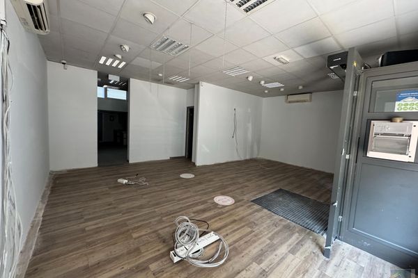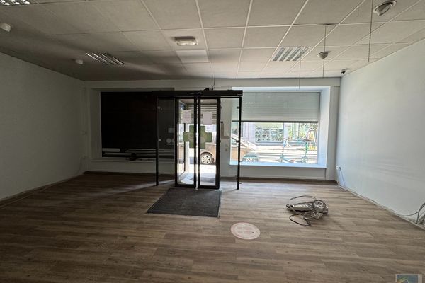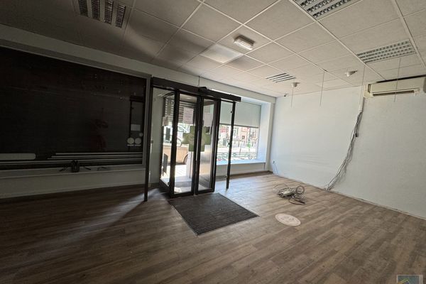*local commercial avant avec parquet au sol, deux vitrines et porte à ouverture automatique de +/- 50 m2