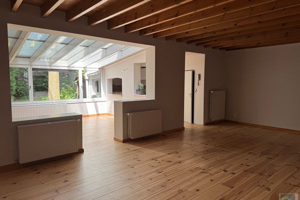 -living de +/- 40 m2 avec magnifique plancher au sol et FO cassette : très lumineux car il est éclairé par une véranda de +/-23 m2 qui communique par ouverture passe plat vers la cuisine