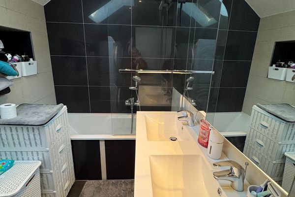 *salle de bains de +/- 6 m2 avec installation machine à laver et toilette