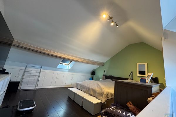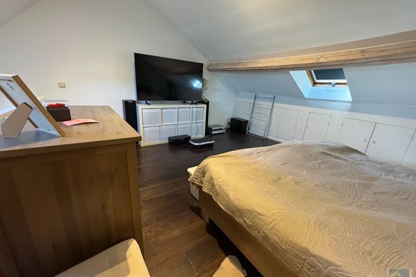 *chambre de +/-21 m2 avec tous rangements aménagés sous la pente de toit