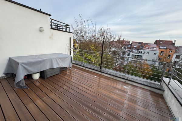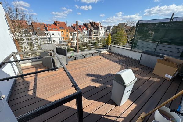 au niveau de living, on trouve une magnifique terrasse de +/- 20 m2 (récente), bien exposée